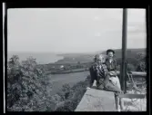 Karaktäristiskt träd där tandläkare Gunnar Högberg sitter under det, på Hallands Väderö, Skåne 1922.
