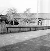 Huset längst t.v. (med markis) är Skolgatan 9. Uthuset tillhör Jupiter 14, Skolgatan 11. Därefter syns Skolgatan 13-15, 17, 19 och 21.