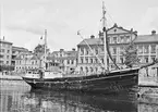 Krogen "Sju helvetes gluggar" rivs för att lämna plats för bygget av bostadsrättsföreningen Islandsgården, kvarteret Örnen, Östra Ågatan, Uppsala december 1935