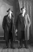 Hållsta - Karlsson och Olle Åberg provar kläder hos Carl A. Ohlsson. 23 november 1953. Melka AB Konfektion, Box 34, Skara