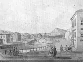 "Det gamla Uddevalla". Norra och Södra Hamngatan med Bäveån i mitten i Uddevalla.