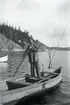 Två personer i en eka, den ene med gevär. Troligtvis i trakten kring Vänersborg.