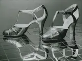 Dammode visas på Nordiska Kompaniet 1944. "Bally-nyhet. Aftonskon Ballerina", damskor med kilklack, öppen tå och knytband.