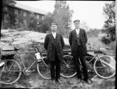 "Till vänster Amandus Jansson i televerkets uniform. Mörkblå på vintern, gråspräcklig på sommaren. Vänersborg"