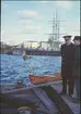 Amiral Erik af Klint till vänster och chefsarkeolog och museidirektör för Sjöhistoriska museet och Wasavarvet, Per Lundström, vid invigningen av Wasavarvet.