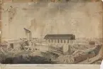 Utställningen "Barthélemy Svensk koloni 17841878" i trappmonter. Montern visar konst och arkivalier som anknyter till ämnet.