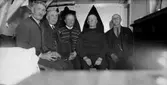 Skonertskepp Tärnan av Timmernabben. Kapten Emil Löfgren och besättning. Fr.v övre raden: Einar Hedberg Fr.v nedre raden: Styrman Holm, Löfgren, båtsman Axel Gustafsson, Sjöberg?