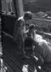 Från vänster Tilda och Albertina på bryggan ut till Kallbadhuset. Första kallbadhuset på Falkenbergs strand. Anlades på 1800-talet. Sedan "Patriks badhus".