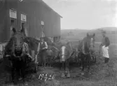 "Gödselkörning. John 'Grock', Gösta och en okänd. 5/8 1920."