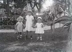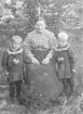 Bonden Erik Nilsson på Flöggs med hustrun Marta (född Johansson) och barnbarnen Drougge. Se även bild nr C 89-3773.