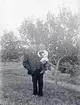 Reinhold Bäckström från Köpenhamn med sin farfar Thure Bäckström. Reinhold Bäckström är son till Erik Bäckström, som i sin tur är bror till Karin Bäckström. Karin Bäckström f. 1880 drev fotoateljé på Vasagatan 5 i Töreboda. Hon tog över den av sin far Thure Bäckström, som hade etablerat firman 1886, och hon drev den mellan 1896 -1916. Karin Bäckström gifte sig år 1917 med John Knape.