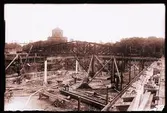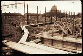 "Garage Friggagatan. Sydvästra gaveln - resning av takstolar."