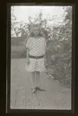 "Fogelstad" Porträtt av en flicka i blommig klänning.