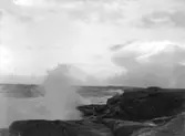 Enligt text som medföljde bilden: "Lysekil. Vid Stångehufud i storm Ön med tobakssten? 26/7 1899."