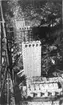 Vy från byggandet av Ölandsbron. Här ser man hur vägbanan på högbron gjuts från vagnar som, hängande under bron, matades fram från pelare till pelare. I bildens vänstra nederkant syns den tillfälliga vägbank som byggdes från Svinö och ut i sundet.