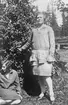 Sannolikt Alf Liljefors står ute framför buskar, sannolikt i Sverige