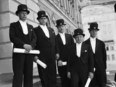 Medicine doktorer på Universitetshusets trappa, promoverade vid Uppsala universitet - Gunnar Berg, Svante Annersten, Egon Norinder, Mareus Diamant och Gunnar Redell