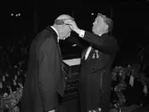 Promotor professor Gregor Paulsson "sätter jubellagern" på professor L A Jägerskiöld