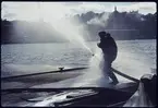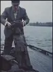 Dykarbasen Per Edvin Fälting gör föremål rent från slam och lera med hjälp av vattenstråle.