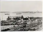 Hamnen 1926. Bilden tagen från Ångkvarnen. En av de bästa bilderna på elevatorn som finns.