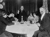 Författaren, läkaren och folklivsskildraren August Bondeson i vänners krets i häradshövding Algot Carlanders hem i Göteborg. De sitter kring ett litet bord med stora glas och ett par av männen röker. Bondeson sitter längst till höger.