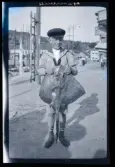 Falkjakt, Persien. Sida ur fotoalbum med fyra fotografier limmade på ark.
