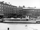 Fiskaffären i Mölndals centrum den 10 maj 1991. Närbild på fisk i fiskdisken.