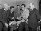 "Båtgravar i Valsgärde berättar om storbondesläkt i Fullerö" - professor Sune Lindqvist, arkeologerna Else Nordahl, Bengt Schönbäck och Björn Allard samt preparator Hilmer Gelin, Museet för nordiska fornsaker, Uppsala 1948