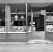 "Skyltfönster med skyltning av fotogenlampor och ingång från St. Hellevigsgatan"