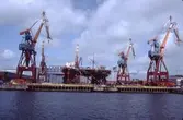 Dockning vid Götaverken. M/S Cleopatra går in i stora dockan, som har en lyftkraft av 18000 ton. DEn mindre dockan lyfter 8000 ton.