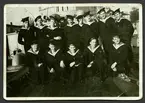 Bilden visar underbefäl på kanonbåten Svensksund som har tagit uppställning för gruppfotografering på däck.
