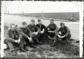 "Kockum-fronten" Några mannar sitter vid vägkanten till en grusväg.