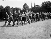 "En grupp läroverkspojkar" marscherar i Skolparken, Luthagen