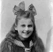 Ateljébild på en flicka med hårband och klänning. Beställare till bilden: Fru Ella Wahlberg ifrån Halltorp.