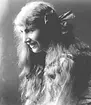 Asta Jansson, lite från sidan, med långt mörkt hår med hårband med rosett. Troligen i anslutning till konfirmation.
