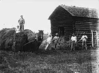 Höbärgning på Per-Jöns åkrar mot "Höl-myra". Samma personer som på bild C 89-3694.