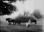 Enligt noteringar och på fotot: "Höbärgning 28 juli 1923. Gösta, JJ, Klara, Lisa".