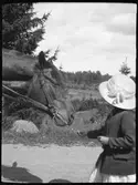 "Sommarbild från Göteborg 1901, häst med halmhatt." Se bild 459.