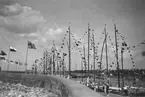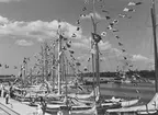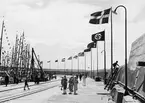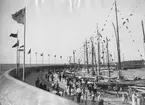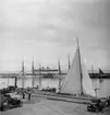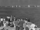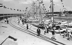 '1 val i vattnet nära hamnpir med folksamling. :: :: Ingår i serie med fotonr. 5202:11-18. Se även hela fotonr. 5202-5218 med bilder från Frits Johansen.'