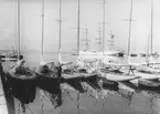 'Akka-expeditionen sommaren 1932: :: :: Vy med skrattmåsar över vattnet, i bakgrunden mudderverket Sandormen och hamnpir. :: :: Ingår i serie med fotonr. 2400-2453.'