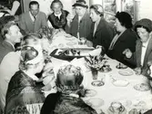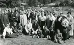 Tåg till hembygdsfest på Vifors festplats. I den första vagnen sitter Johan och Märta Hägglund, från Häckelsäng.