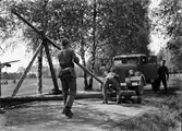 "En vägspärr som hejdat en lastbil för visitering" under hemvärnsdagen på Polacksbacken
