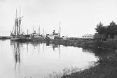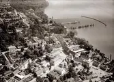 Hjo, 1959. I bakgrunden skymtar hamn-magasinet, där är numera restaurang (Hamnkrogen) och presentaffärer.