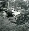'Akka-expeditionen sommaren 1931: :: :: Vy med anordning för impregnering av garn och tågvirke med tjära i förgrunden. Hus i fonden. :: :: Ingår i serie med fotonr. 2182-2234.'
