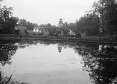 "Vallonsmedjan med Bruksgården bakom. I bakrunden skymtar klocktornet", Harg, Uppland 1911