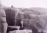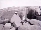 Stenungsöns jättegrytor. "Jättegrytor finns det gott om i Bohuslän. Här syns en jättegryta på Stenungsön, längre ner finns en till som ej har kommit med på bilden. Ute på sundet synes en seglare."