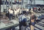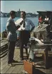 Bilden visar utrikesministern Ola Ullsten som ger ett intervju under ett besök på örlogsbasen Karlskrona.