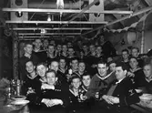 Besättningsmän äter julmiddag i mässen på M/S NORDSTJERNAN.
