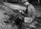 Sekundchefen med sina båda tjänstehästar i Tovatorps - terrängen.