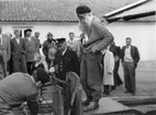 "Stålfarfar" med långt skägg, basker, stickad kofta, byxor av militär modell och snörskor. Han står på John Romans decimalvåg vid torget i Gränna för att kontrollera vikten - den visar på 67kg. Vikten kontrolleras av Tage Grennfelt och polisen som ser på är Holger Isaksson. I publiken i bakgrunden syns till vänster Inge Carlsson, Emil Carlsson och Roland "Rulle" Johansson. Till höger står kakelugnsmakare Sandström